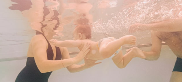 • Petits groupes de 4 bébés maximum, accompagnés d’un parent dans l’eau